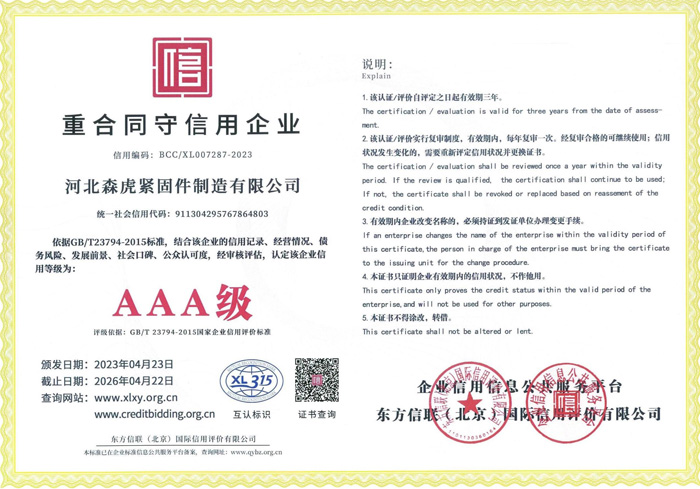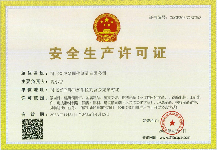 歡迎新老客戶(hù)來(lái)電垂詢(xún),來(lái)廠參觀考察,洽談合作河北森虎緊固件制造有限公司